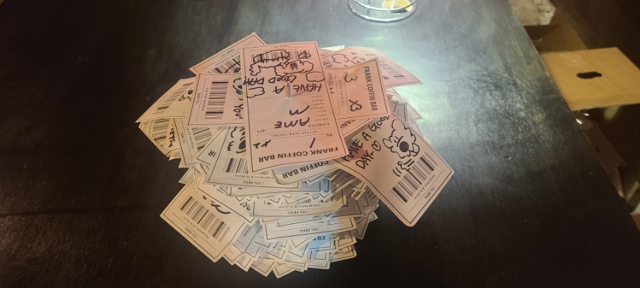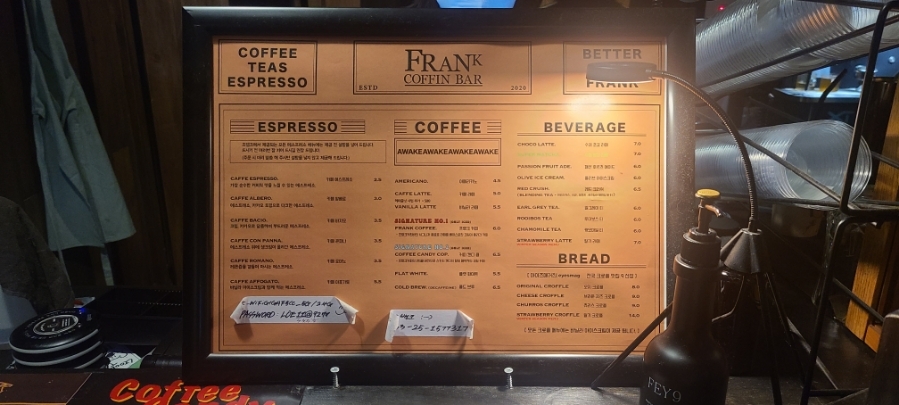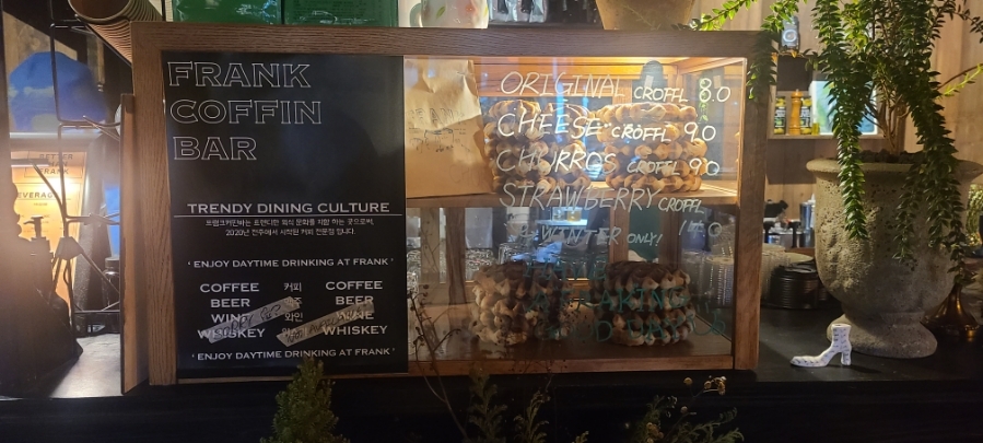 저희는 시그니처 no1 프랭크 커피, no2 커피 캔디 콥(버터 스카치 크림라떼)랑 브라운 치즈 크로플 주문했어요