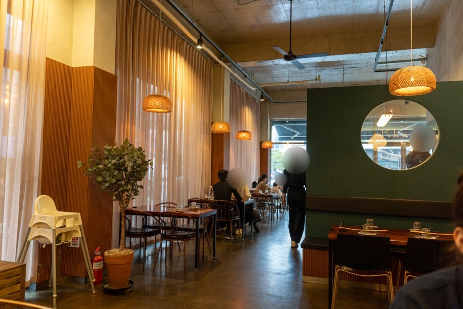 들어오시면 따뜻한 조명에 우드 그린으로 이뤄진 예쁜 인테리어 공간이에요